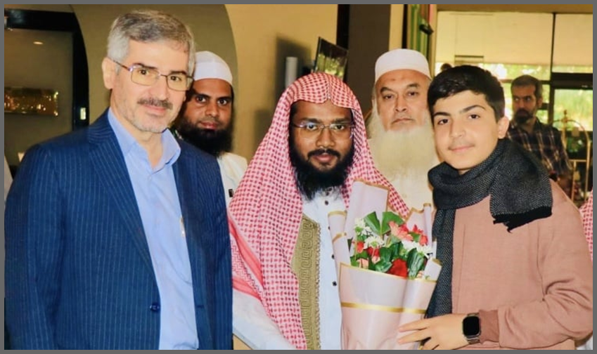 ইরানি ক্বারি সাইয়্যেদ জাসেম মুসাভীকে স্বাগত জানাচ্ছেন আন্তর্জাতিক ক্বিরাত সংস্থা বাংলাদেশ-এর কর্মকর্তাবৃন্দ