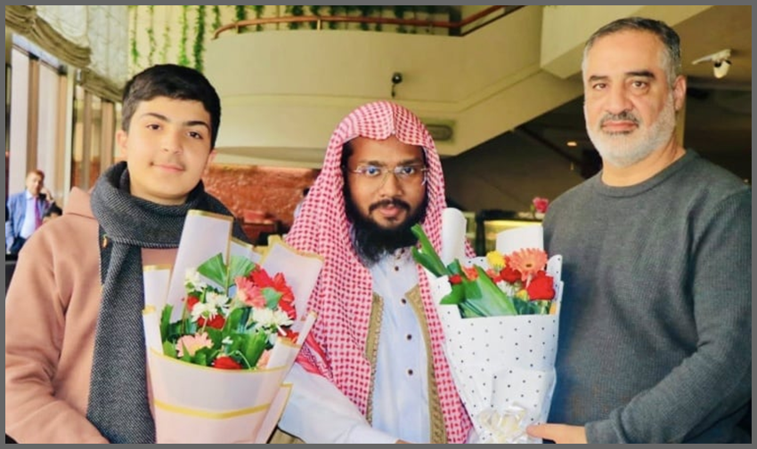 বিমানবন্দরে ইরানের প্রখ্যাত ক্বারী হামেদ শাকের নেজাদকে স্বাগত জানান শায়েখ সাদ সাইফুল্লাহ মাদানী