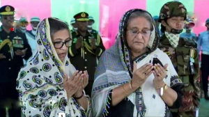 মঙ্গলবার ১১টা ৫৫ মিনিটে তিনি সমাধিসৌধ বেদিতে পুষ্পার্ঘ্য অর্পণ করে এ শ্রদ্ধা জানান। শ্রদ্ধা নিবেদন শেষে অশ্রুসিক্ত চোখে বেদির পাশে কিছুক্ষণ নিরবে দাঁড়িয়ে থাকেন প্রধানমন্ত্রী। এ সময় সশস্ত্র বাহিনীর একটি চৌকস দল প্রধানমন্ত্রীকে গার্ড অব অনার প্রদান করে। বিউগলে বেজে উঠে করুণ সুর। পরে বোন রেহানাকে সাথে নিয়ে পবিত্র সুরা ফাতেহা পাঠ ও বঙ্গবন্ধুসহ সহ ১৫ আগষ্টে নিহত সকলের আত্মার মাগফিরাত কামনা করে দোয়া-মোনাজাতে অংশ নেন। এর পর আওয়ামী লীগ সভাপতি হিসেবে জাতীয়, কেন্দ্রীয় নেতৃবৃন্দ ও উপদেষ্টা মন্ডলীর সদস্যদের সাথে নিয়ে শ্রদ্ধা নিবেদন করে শেখ হাসিনা।
