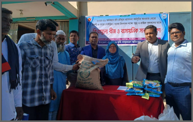 অনুষ্ঠানে উপজেলার ১ হাজার ৯৩০ কৃষকের মধ্যে ১৩০ জনকে ২ কেজি হারে বোরা হাইব্রীড ধানের বীজ ও ১ হাজার ৮শত জন কৃষককে ৫ কেজি হারে উপশী জাতের ধান বীজ এবং ১০ কেজি হারে ডিএপি সার ও ১০ কেজি হারে এমওপি সার প্রদান করা হচ্ছে।