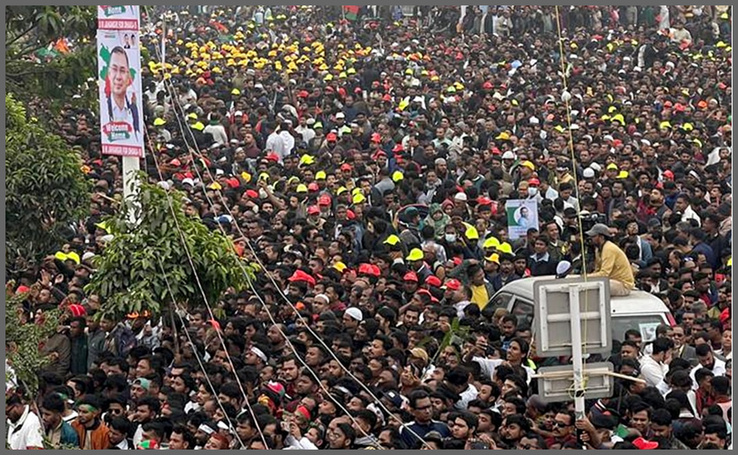 সকাল থেকেই রাজধানী ও আশপাশের জেলা থেকে আসা লাখো মানুষের উপস্থিতিতে ৩০০ ফিট এলাকা এক জনসমুদ্রে পরিণত হয়। স্লোগানে স্লোগানে মুখরিত হয়ে ওঠে পুরো এলাকা। মঞ্চে ওঠার পর তারেক রহমান হাত নেড়ে জনতাকে অভিবাদন জানান।
